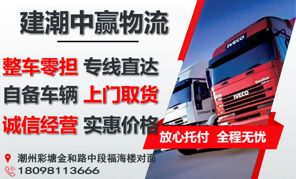 潮州到吴忠物流专线是建潮中赢物流主营重点物流线路之一,提供4.2-17.5米整车包车运输,零担专线,可上门取货,量大免费提送货;潮州到吴忠货运专线价格实惠,欢迎来电咨询。